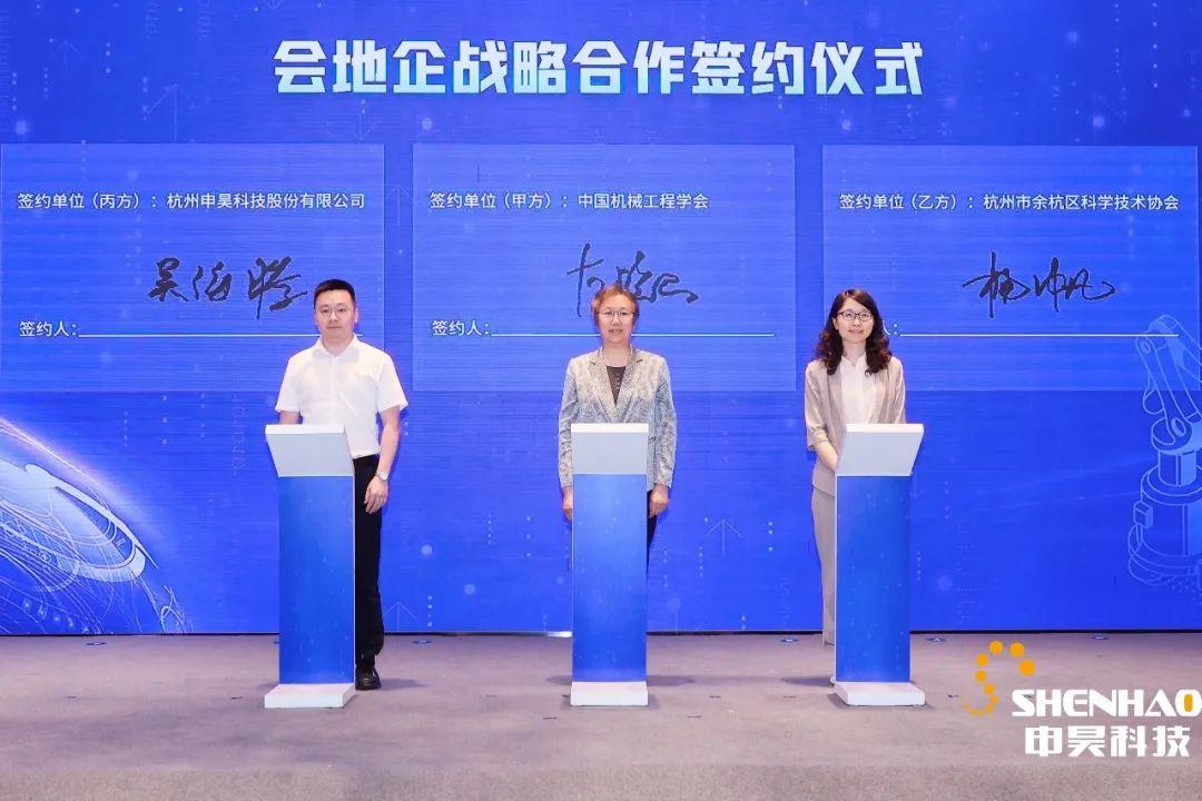 在智能制造數字化轉型與數字價值主題論壇中,申昊科技吳海騰副總經理代表公司與中國機械工程協會、杭州市余杭區科學技術協會簽署了會地企戰略合作協議。